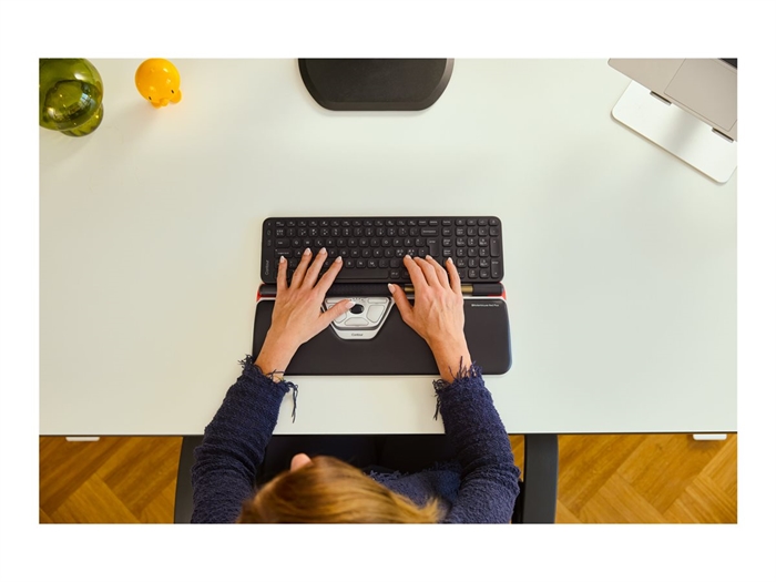 RollerMouse Red Plus er placeret centralt foran tastaturet, hvilket eliminerer behovet for at strække arme og hænder unødigt. Dette hjælper med at opretholde en sund kropsholdning og reducerer belastningen på skuldre, nakke og håndled. Balance Keyboard er designet med justerbare hældningsindstillinger, så du kan finde den mest behagelige position, der understøtter en neutral håndledsposition.